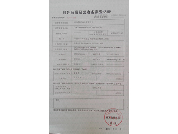 • 进出口资格证